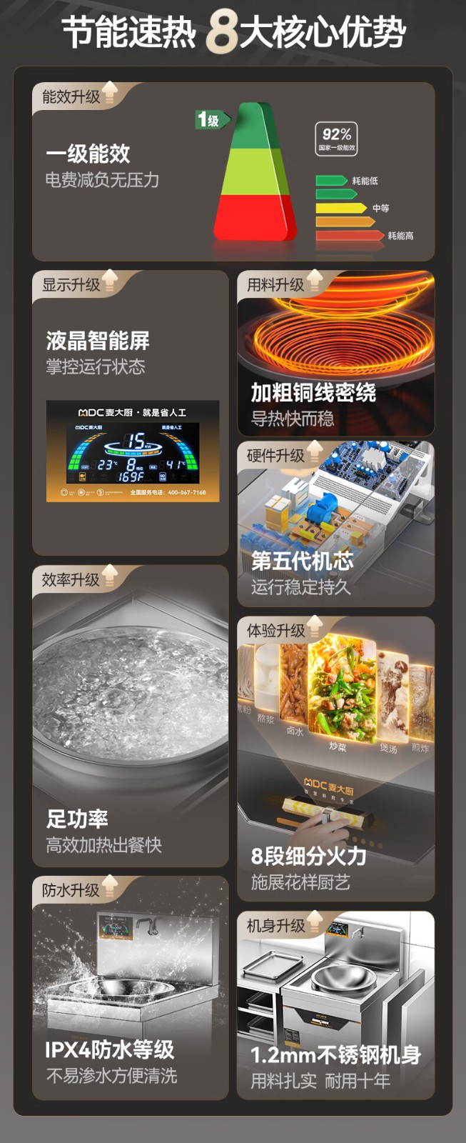 麥大廚商用百人大鍋灶電磁爐旗艦款20KW單頭食堂飯店大炒爐