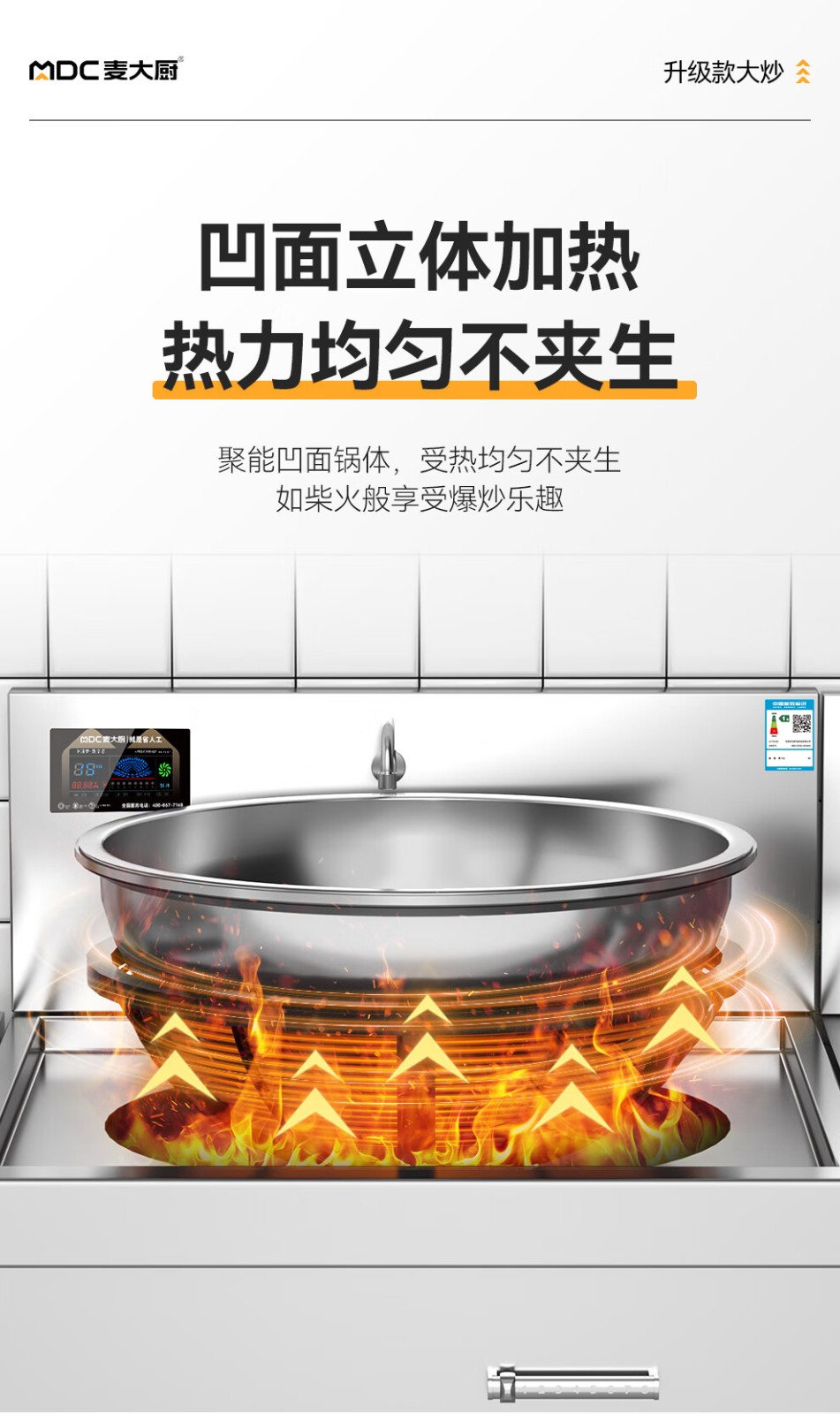 麥大廚單位食堂大炒爐電磁爐升級款12KW單頭工廠餐廳商用大炒鍋