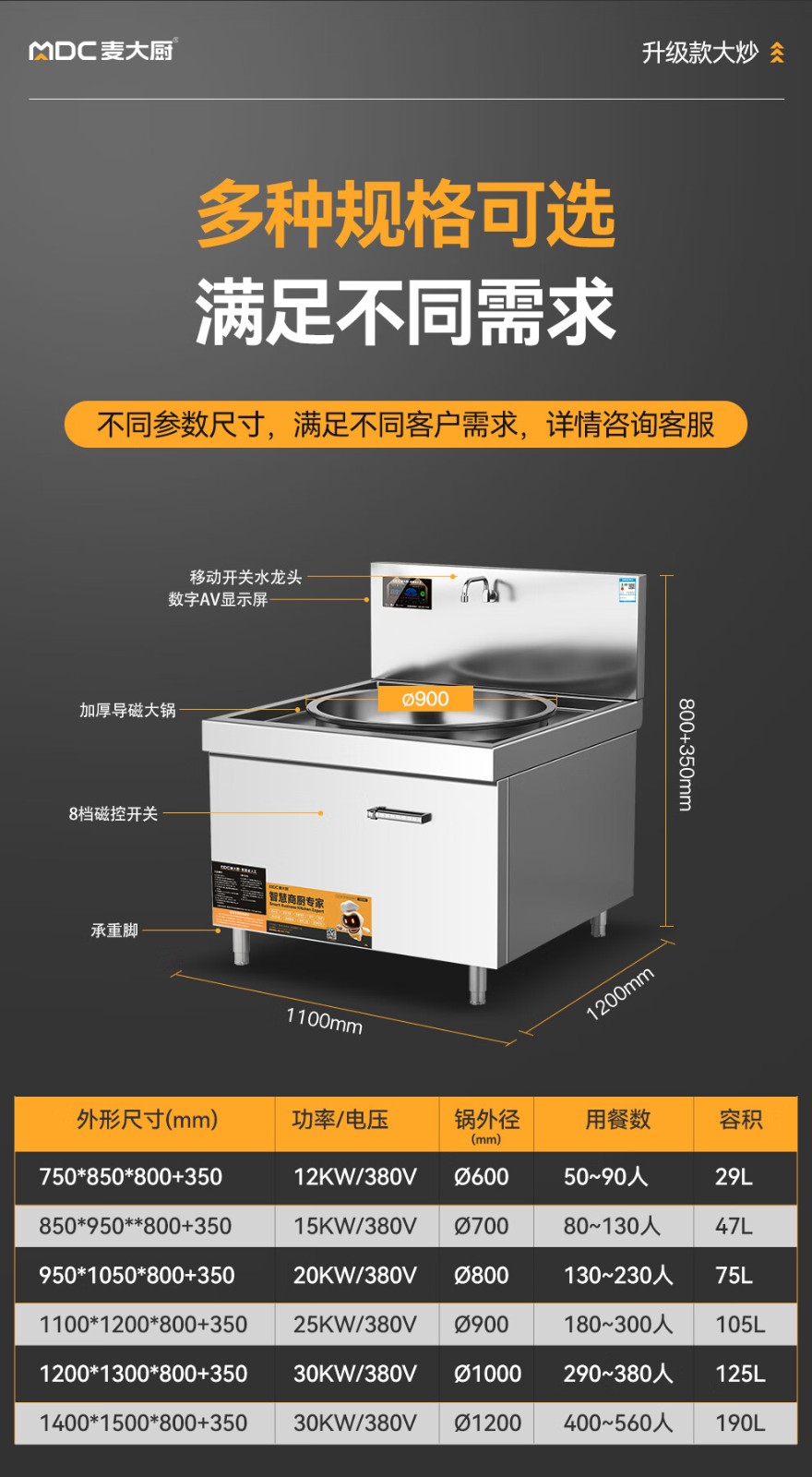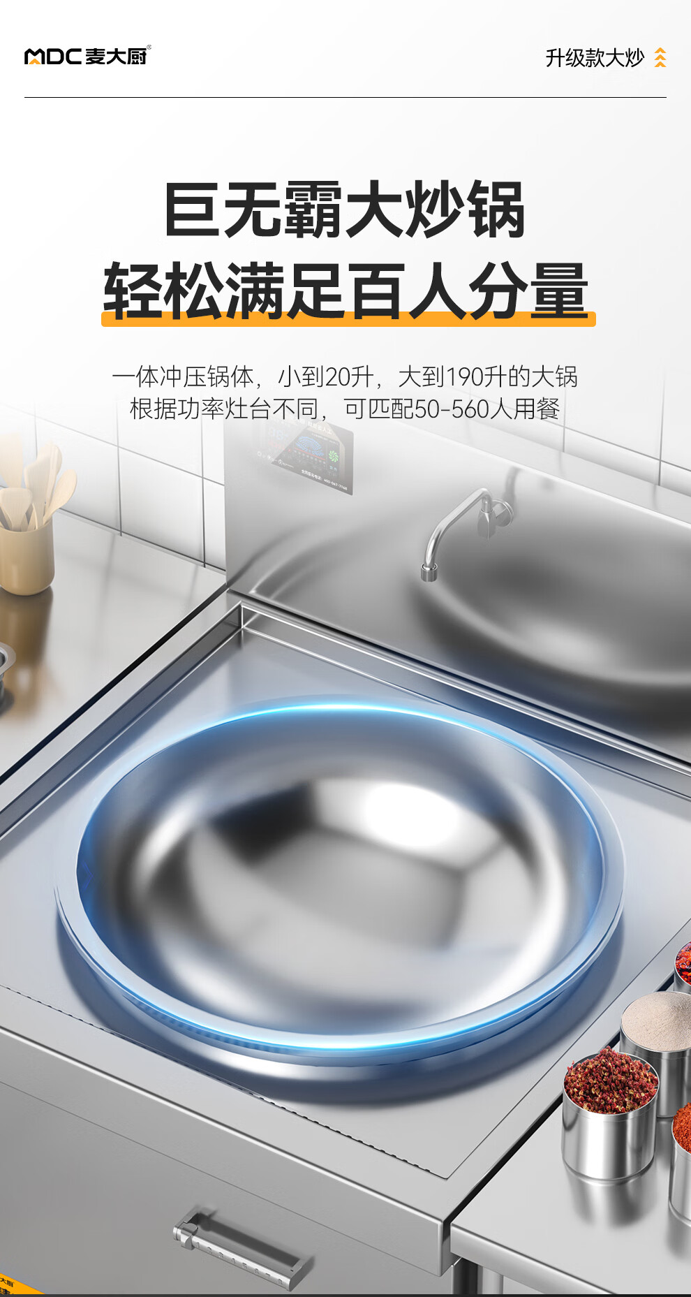 麥大廚大型大炒爐電灶臺升級款25KW單頭工廠食堂商用大炒鍋
