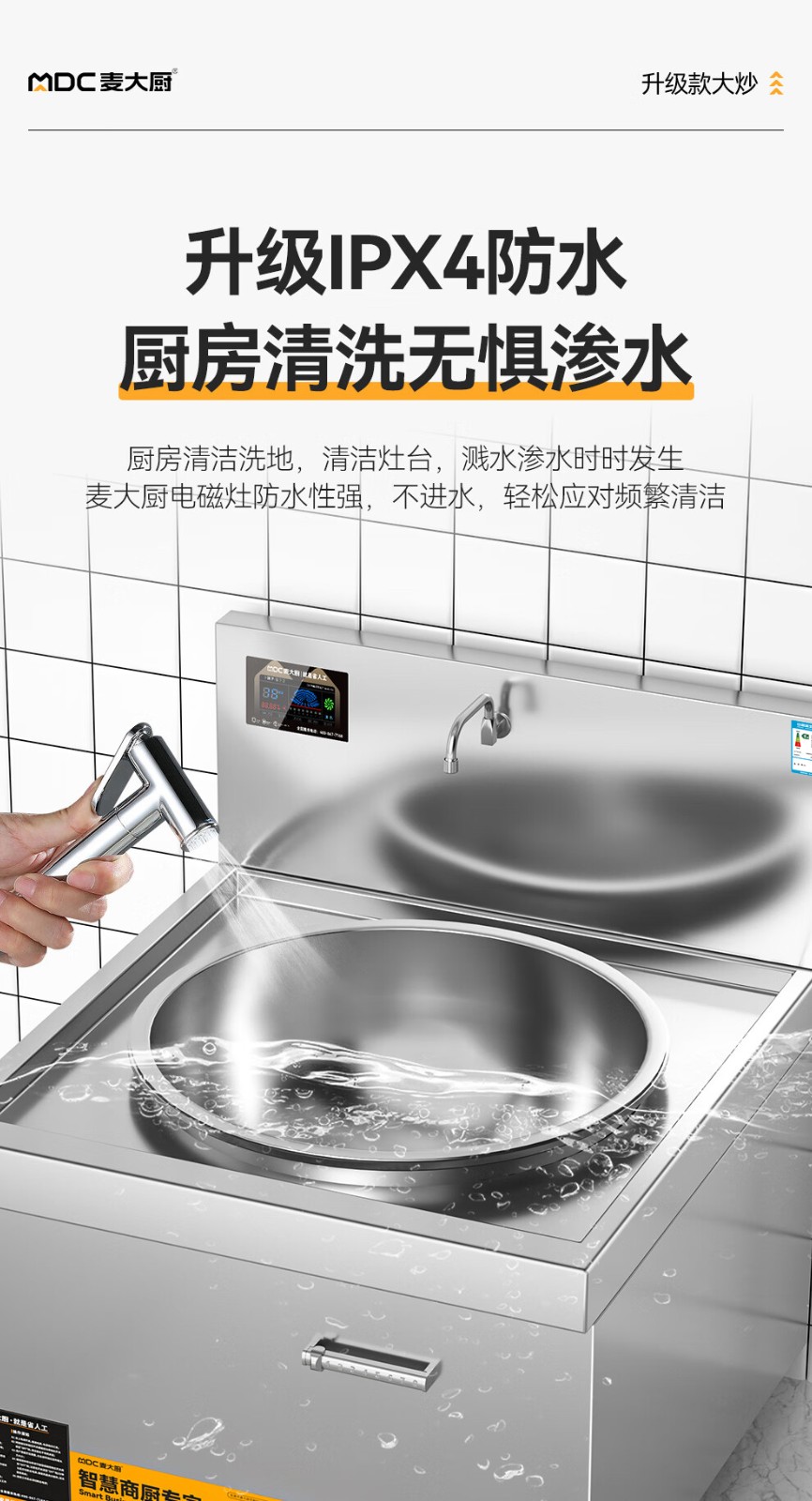 麥大廚大功率大炒鍋電灶臺升級款30KW單頭學校食堂百人大炒爐