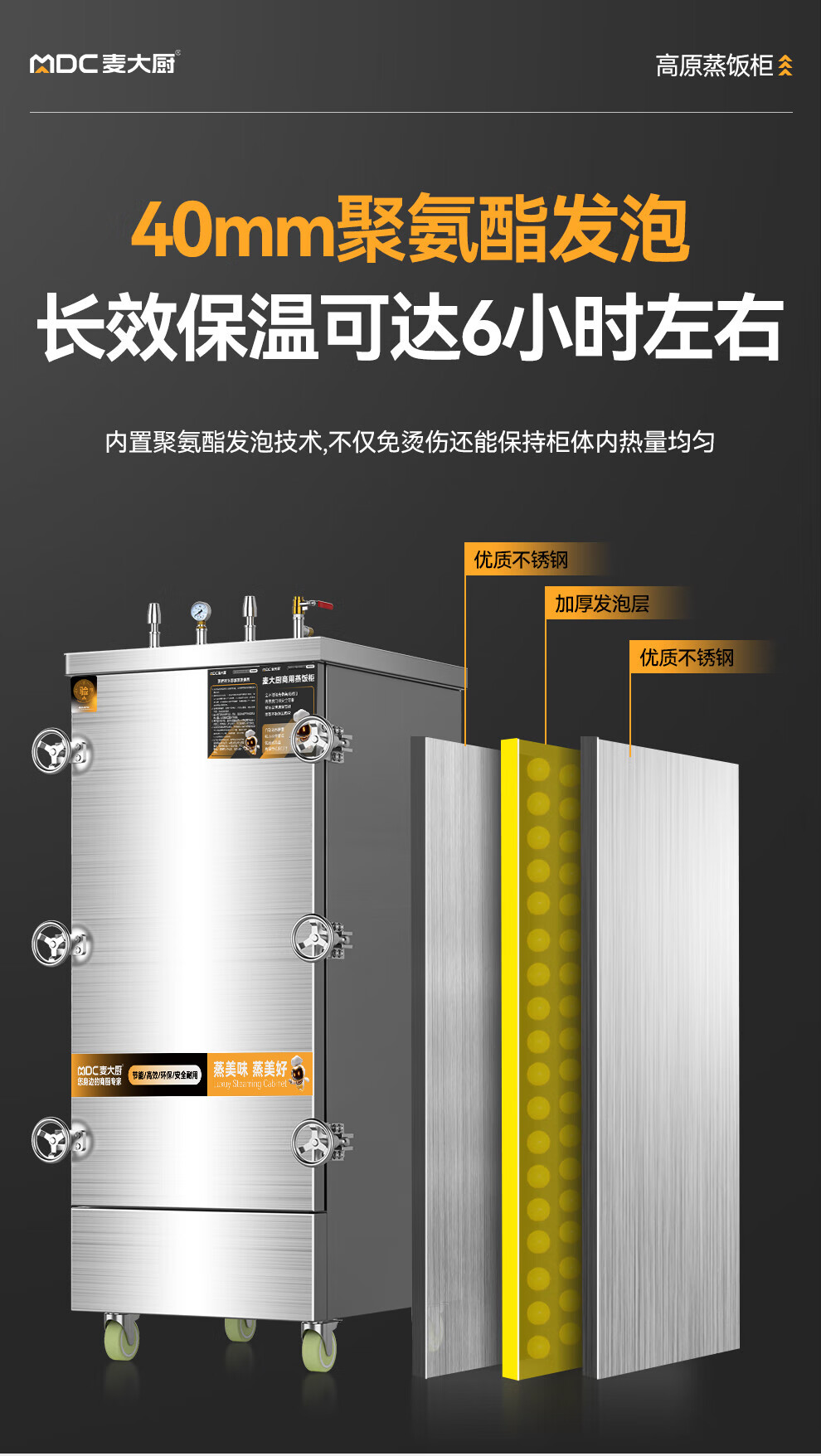 MDC商用高原蒸柜燃氣款48盤雙門蒸飯柜