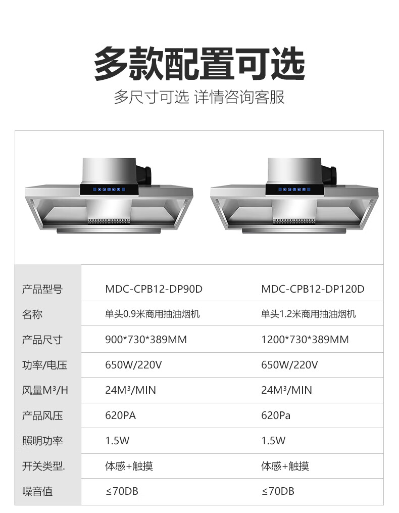 產品噪音值:≤70dB - 更多MDC商用抽油煙機規(guī)格咨詢在線客服