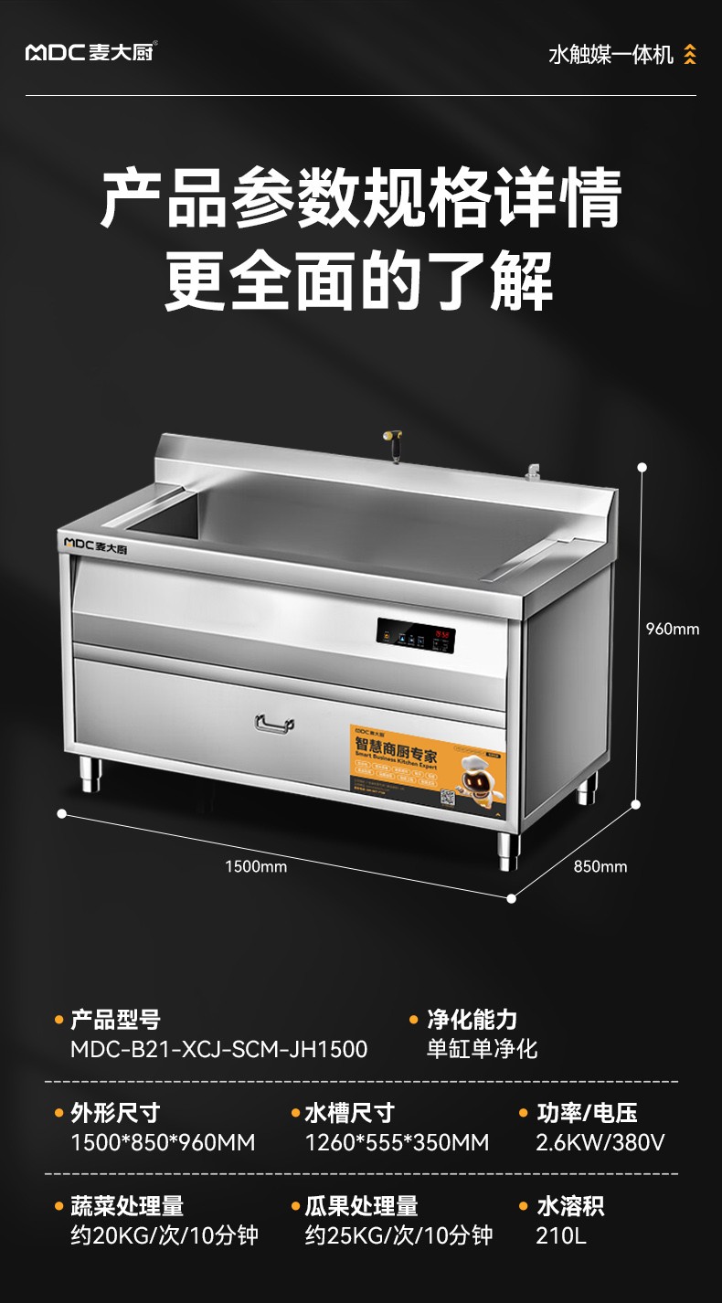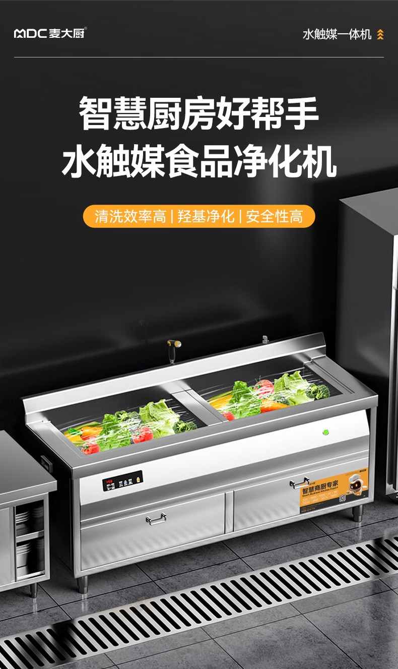 麥大廚1.5米自動商用洗菜機去農藥殘留單缸水觸媒凈化機