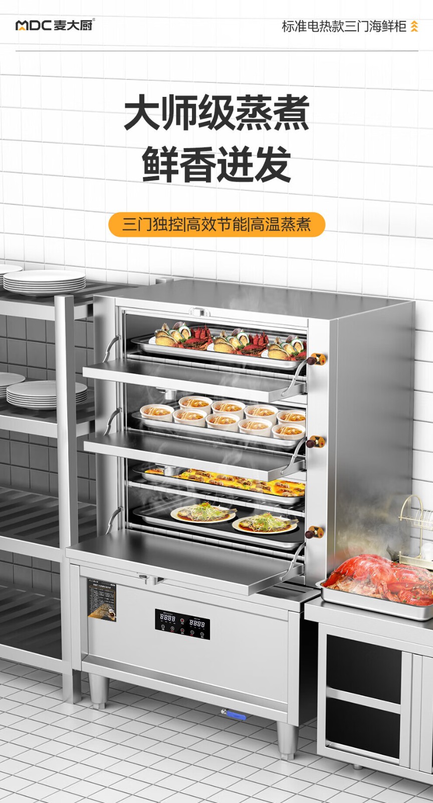 麥大廚商用蒸柜1000mm標準電熱款三門海鮮蒸柜