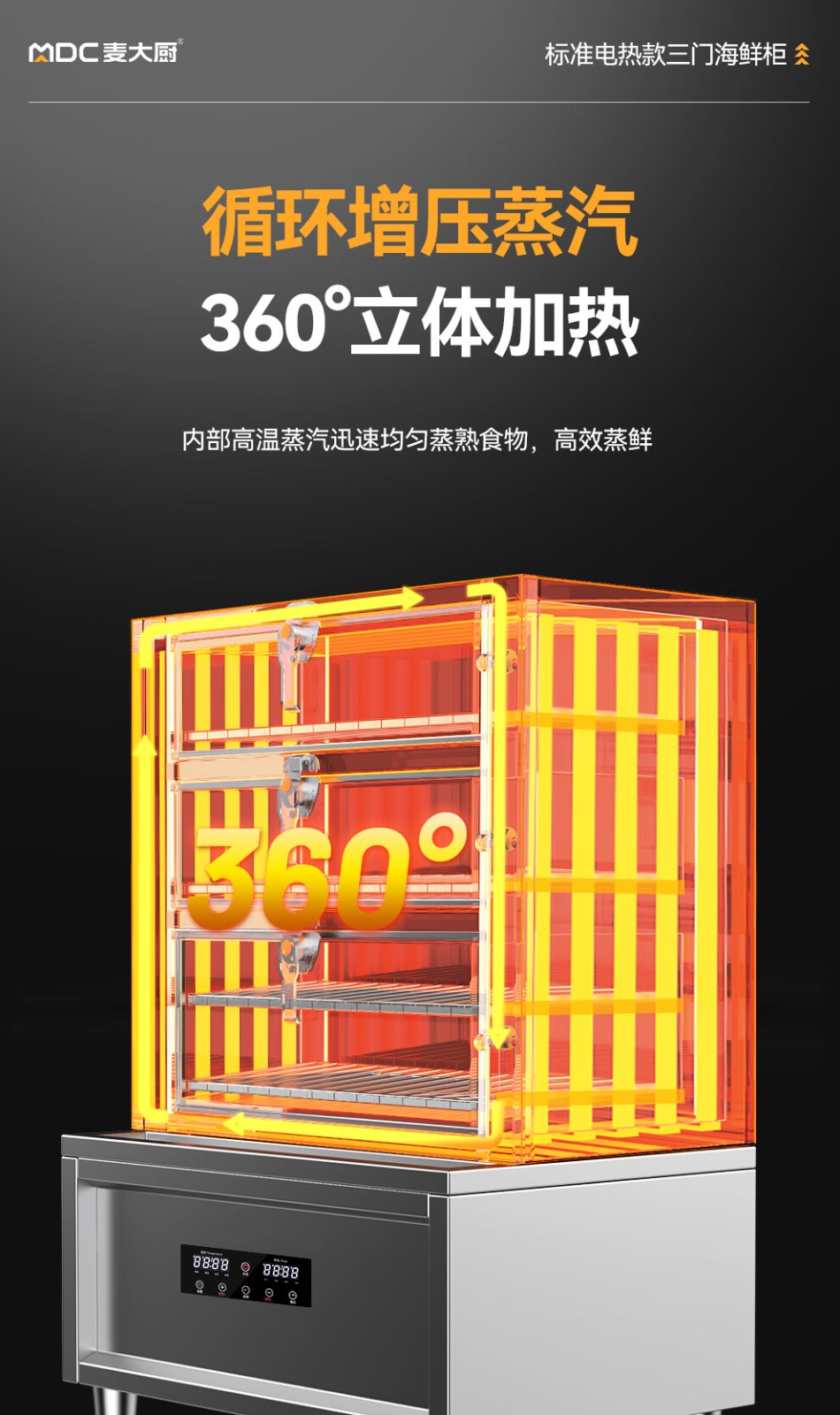 麥大廚商用蒸柜1200mm標準電熱款三門海鮮蒸柜
