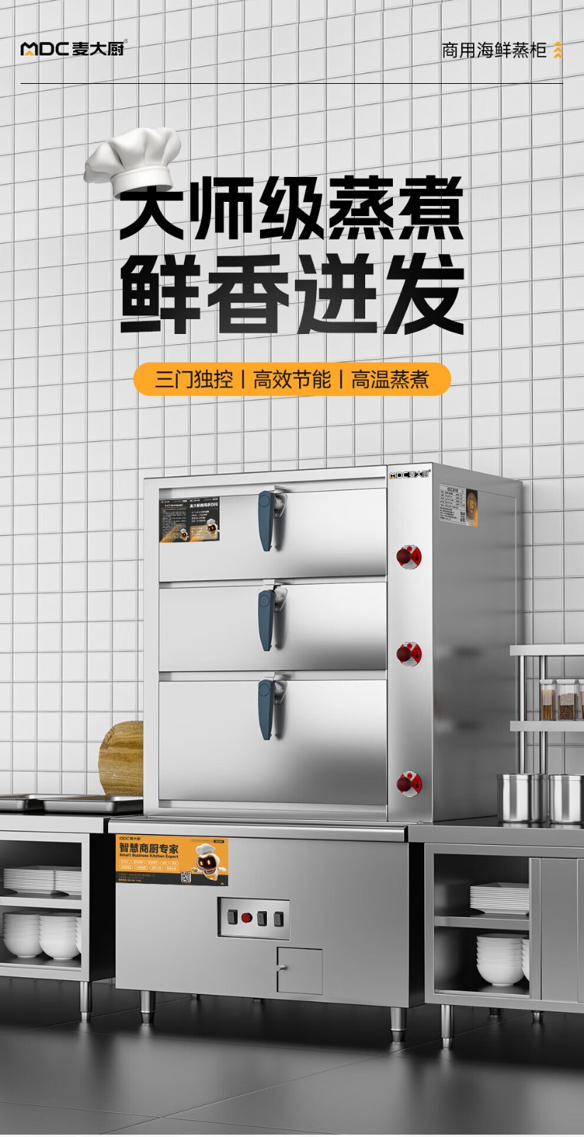 麥大廚商用蒸柜900mm電熱款三門海鮮蒸柜